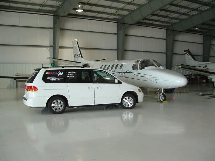 Our Speciality. Color Glo, together with Aero Interior Maintenance, offers services that are targeted at leather, vinyl, and plastic surfaces used for interior components of aircraft. These components would include aircraft seating, side panels and reveals, headliners, seat bases, window reveals, table tops, and drink rails. The industry uses many different types of plastics, vinyl, and leather to accomplish both practical and maintainable surfaces but also to bring elegance to these interiors.